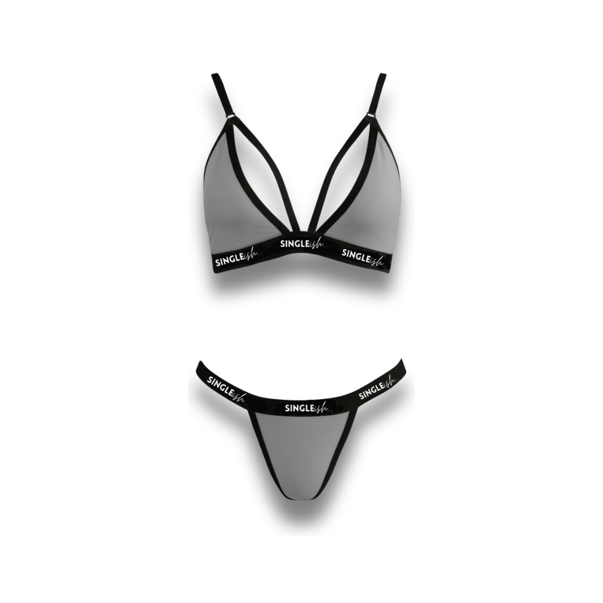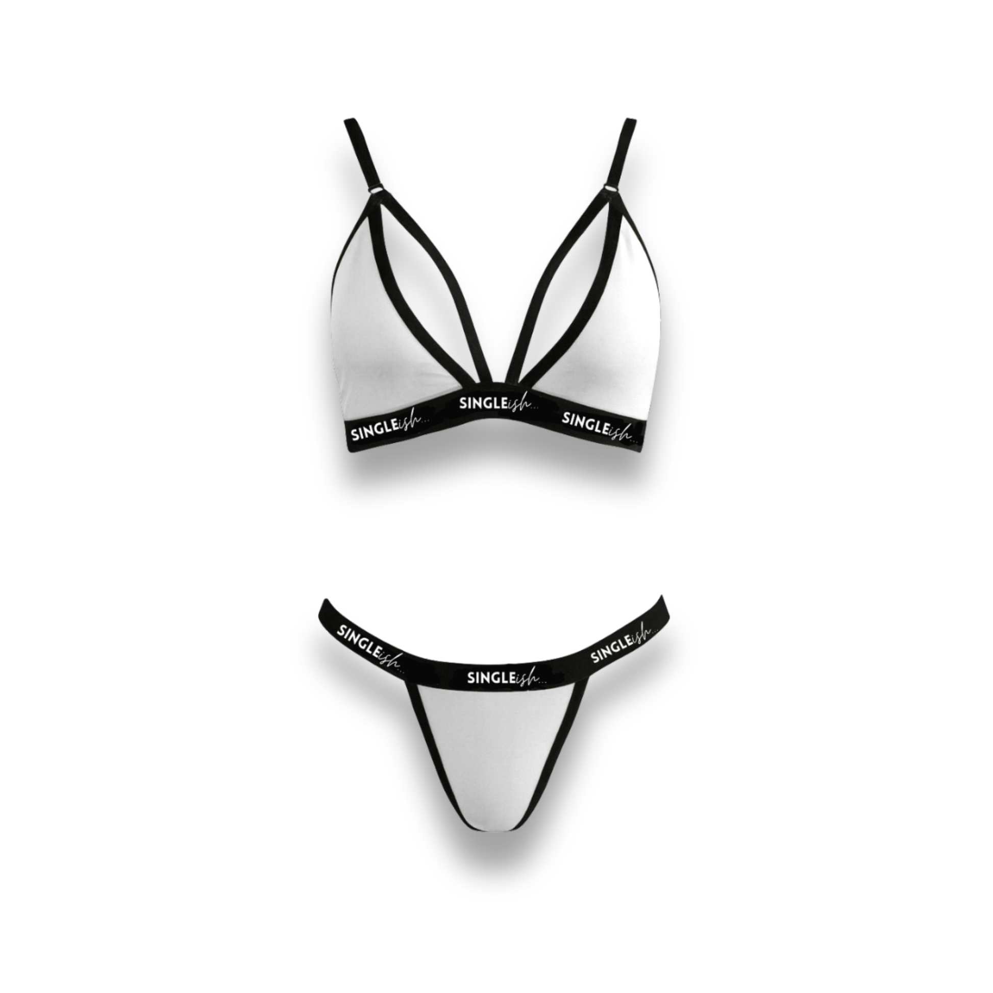 The Mandy Set by SINGLEish… is a strappy triangle bra and thong lingerie set designed for everyday wear with a clean, modern aesthetic.